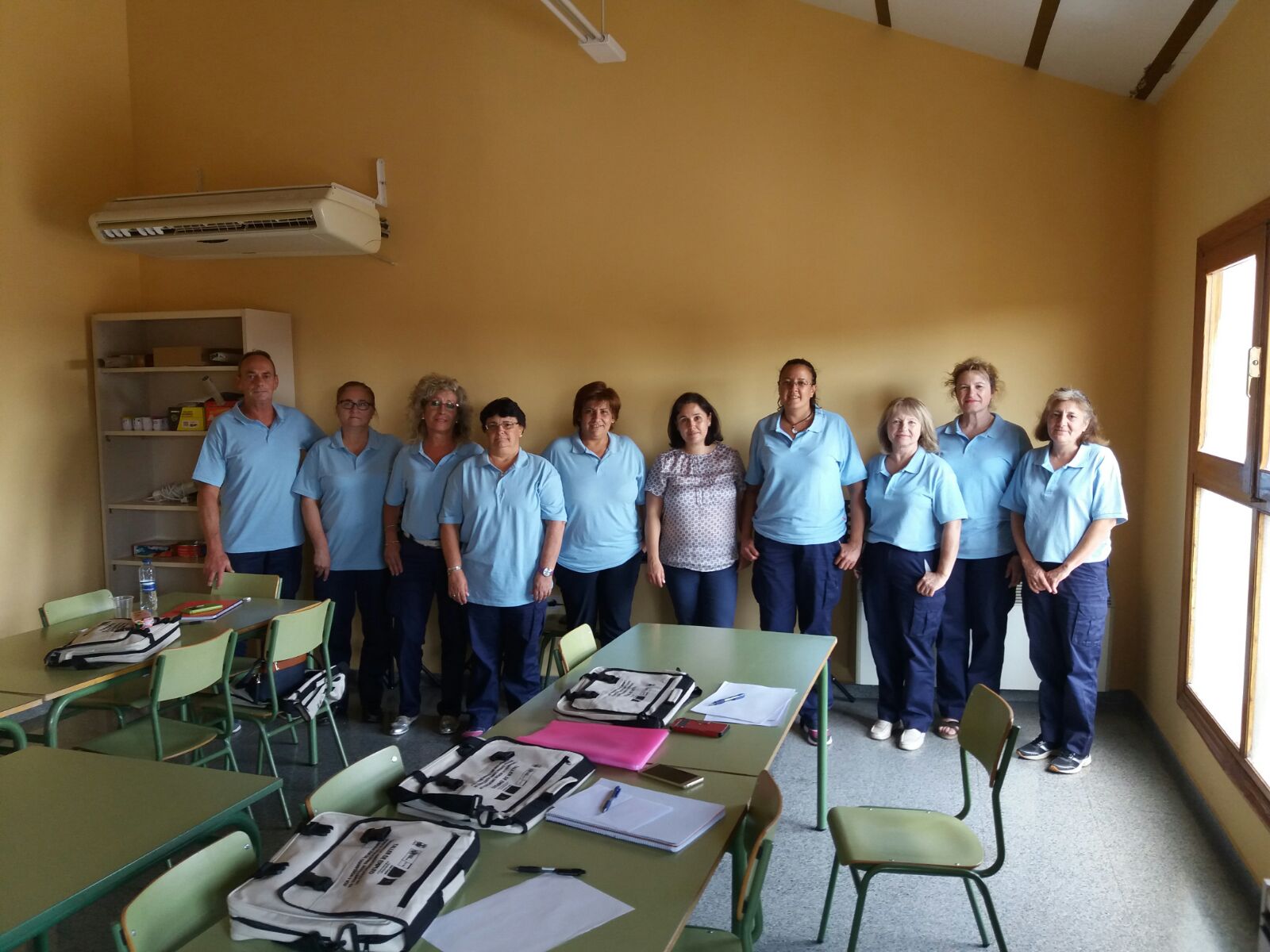 El taller está compuesto por los siguientes alumnos: Anabel, Conso, Hans, Mª Carmen, Mª Pilar, Mª Vicenta, Mercedes, Toñí y Yohana. Supervisados por el monitor de operaciones auxiliares de la vid Javier y del champiñon y vid Rafa, todos ellos coordinados por la directora Mª Angeles.