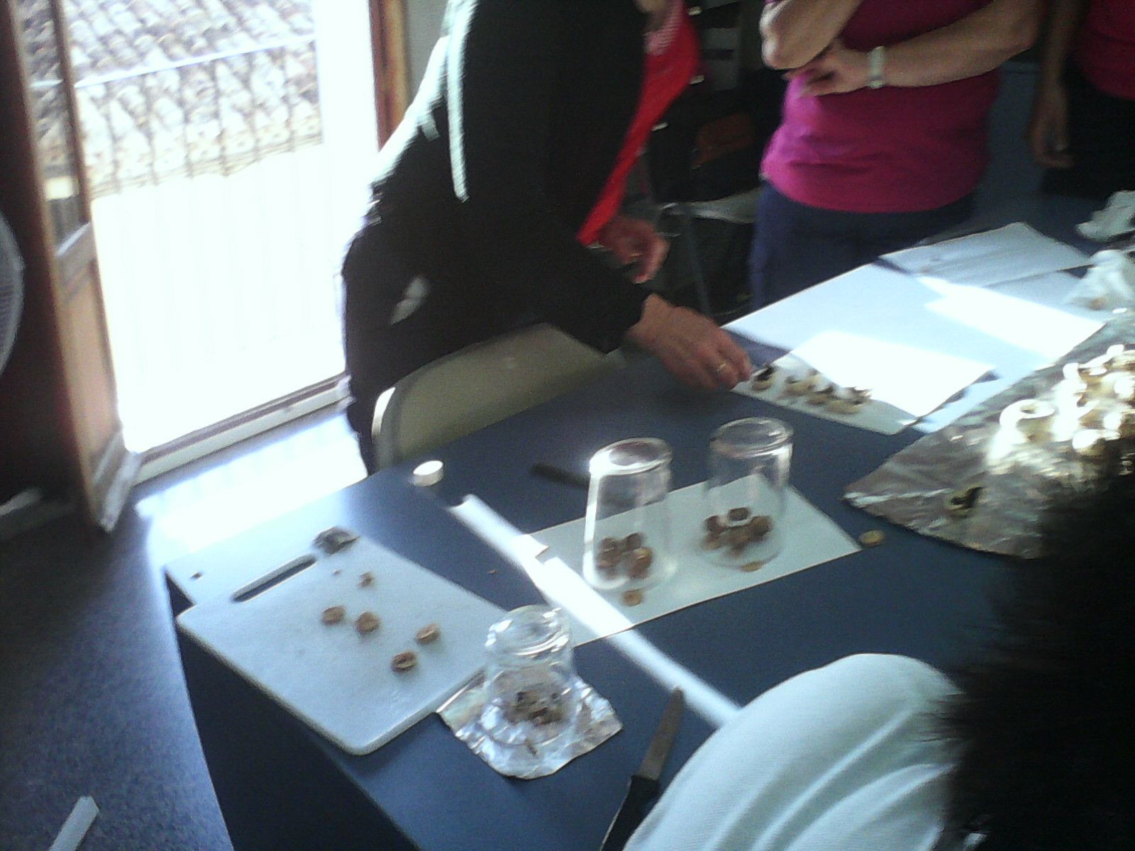 - Se coloca en los frascos esterilizados, la semilla de trigo (dos variedades). Aproximadamente un poco menos de la mitad de su capacidad.
